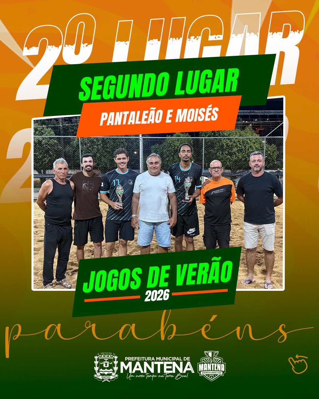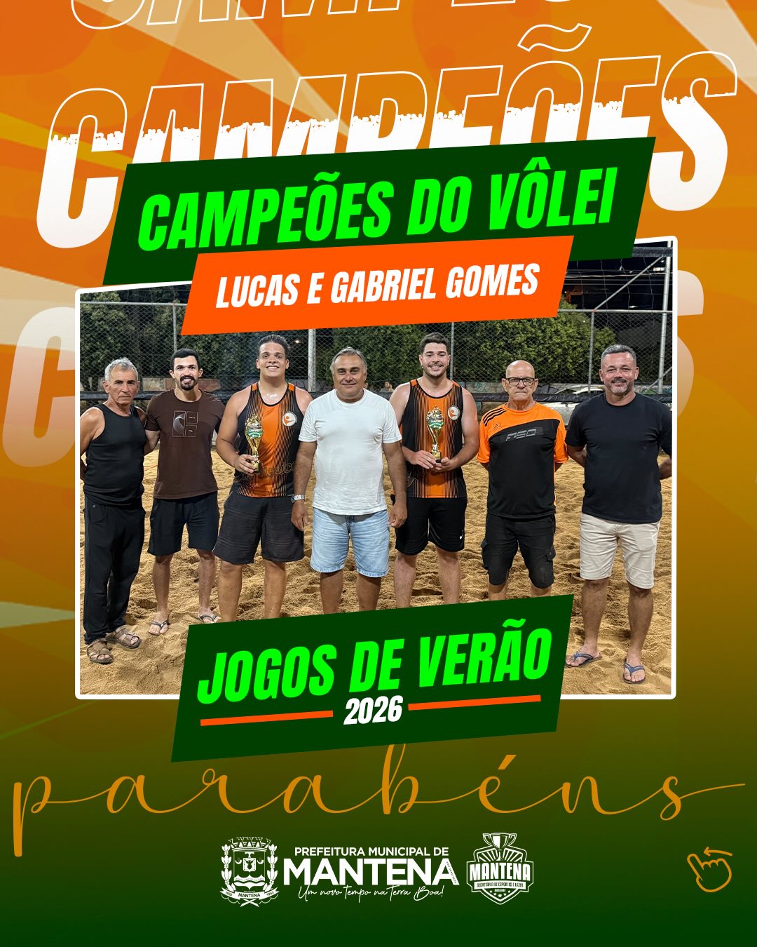 A Prefeitura Municipal de Mantena parabeniza – Lucas e Gabriel Gomes – os destaques da categoria vôlei dos Jogos de Verão 2026, celebrando não apenas os campeões, mas todos os atletas que transformaram a competição em um verdadeiro espetáculo de esporte, respeito e superação.