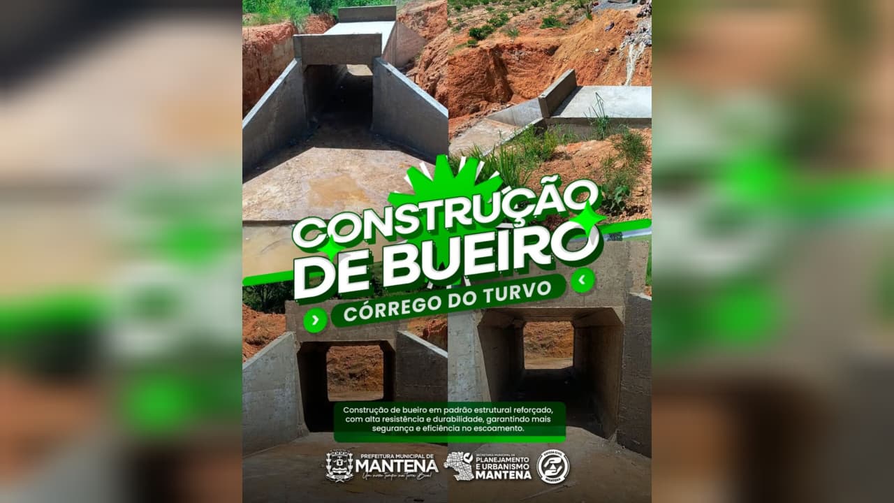 A Prefeitura Municipal de Mantena realizou a construção de um novo bueiro no Córrego do Turvo, seguindo um padrão estrutural reforçado que garante maior durabilidade, segurança e eficiência no escoamento da água.