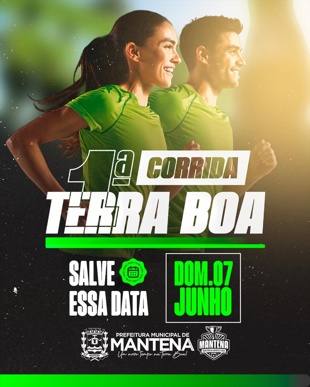 A Prefeitura Municipal de Mantena convida toda a população a já separar o tênis e marcar na agenda: vem aí a 1ª Corrida Terra Boa, um evento que celebra esporte, saúde e superação.