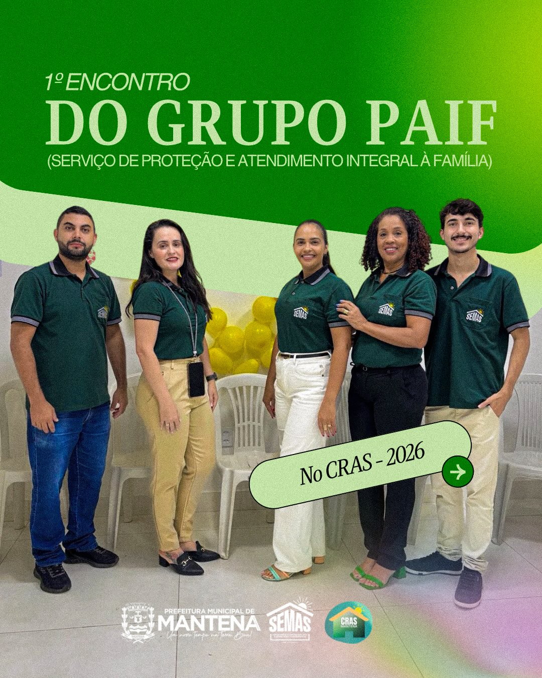 A Prefeitura de Mantena, por meio da Secretaria Municipal de Assistência Social e do Centro de Referência de Assistência Social (CRAS), realizou o primeiro encontro do Grupo do PAIF em 2026, reunindo famílias atendidas pelo serviço para um momento de acolhimento, reflexão e fortalecimento de vínculos.