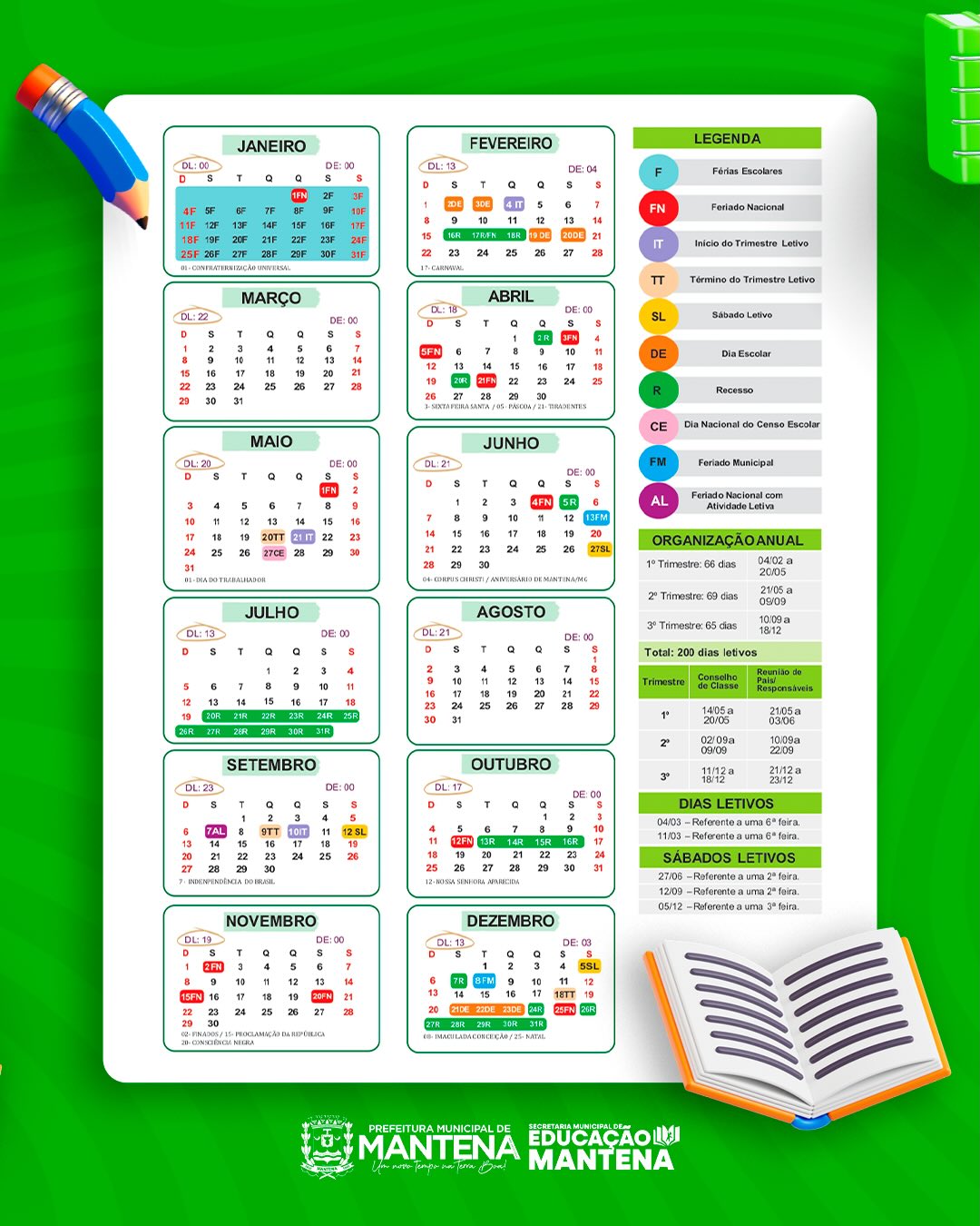 📌 A volta às aulas na rede municipal de ensino está marcada para o dia 04 de fevereiro de 2026, dando início a mais um ciclo de ensino e aprendizagem para os estudantes de Mantena.